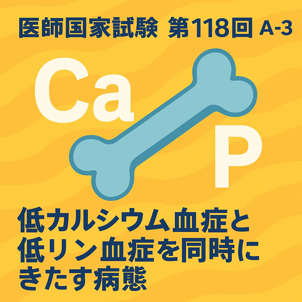 この問題では、他の選択肢に登場する病気で「CaとPがどう動くのか?」を理解することが超重要。